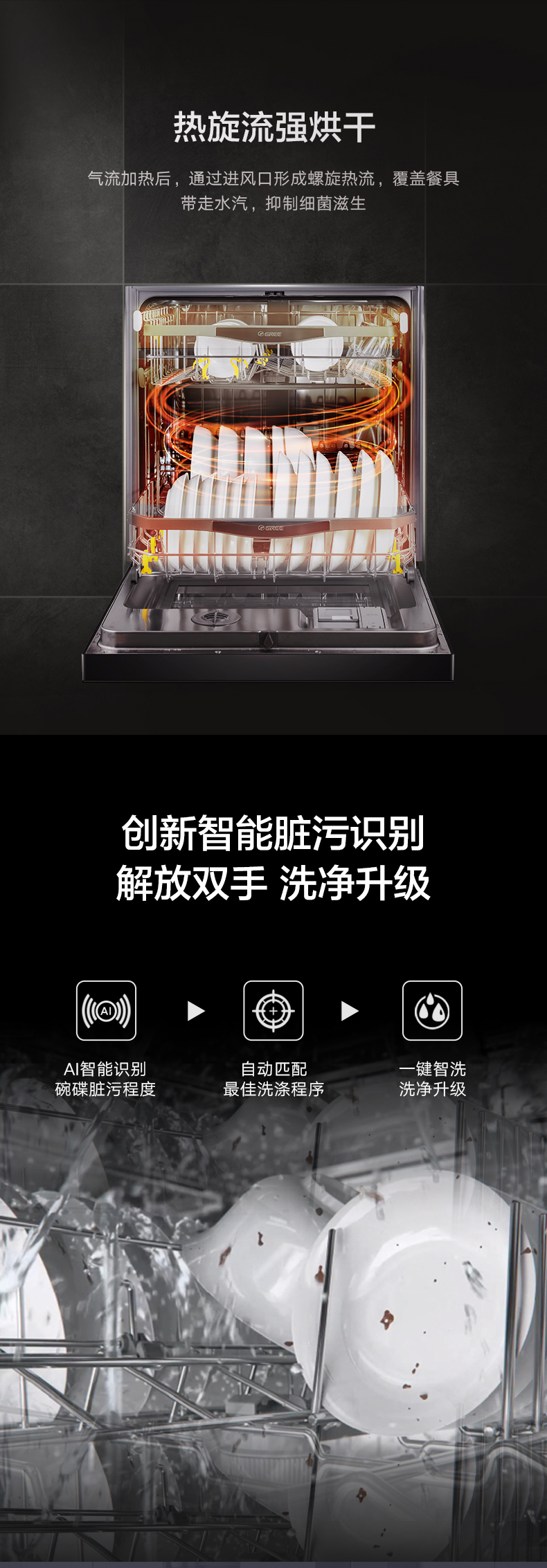 搭載雙擎熱烘干科技,除菌又除味;洗烘存一體,智能臟污識別,除菌率達99.99%
